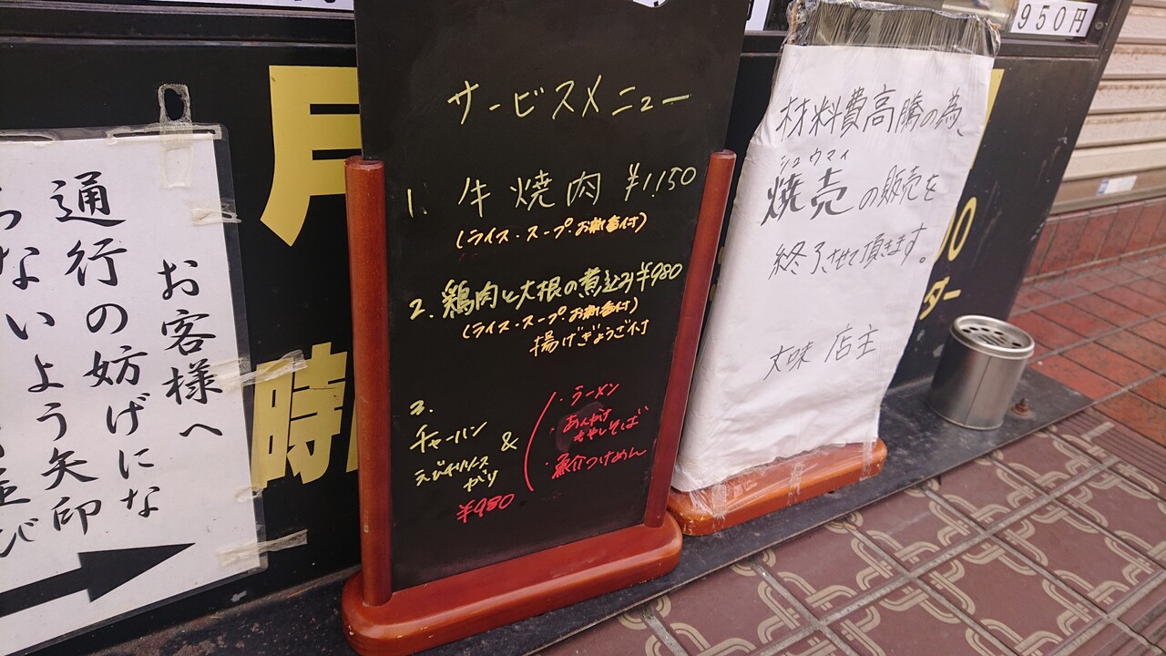 蕨の大人気デカ盛り中華「大味(たいみー)」では、日替わりのサービスメニューがあります。