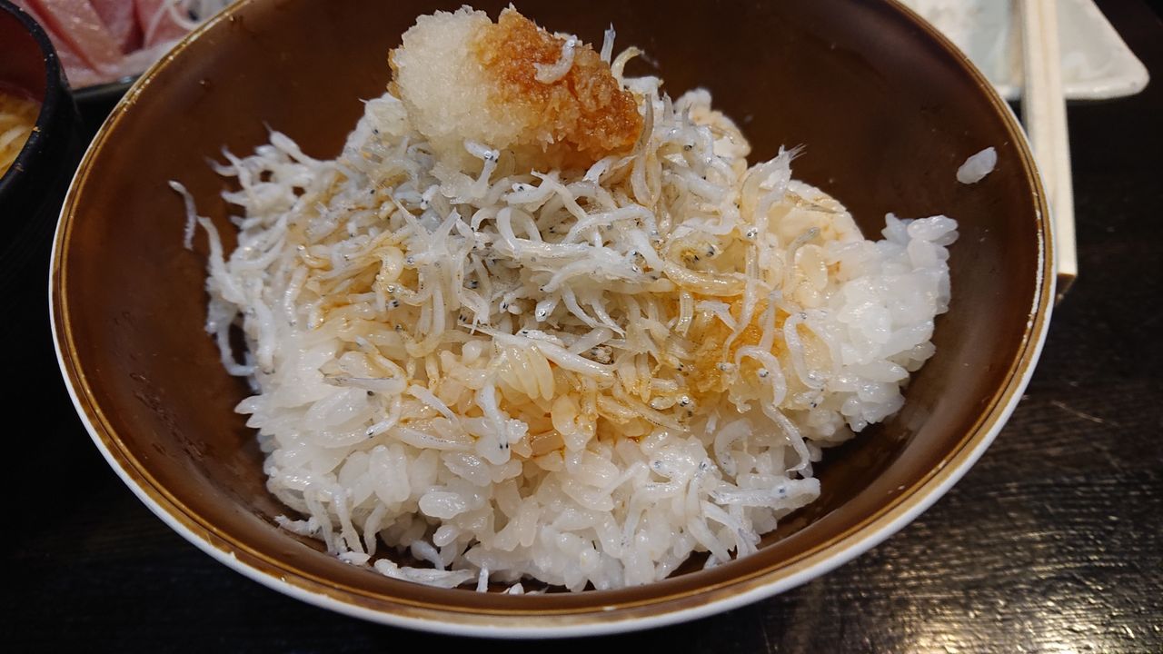 このシラス丼と刺し身、サバのひらきで超豪華ランチでした。大満足。