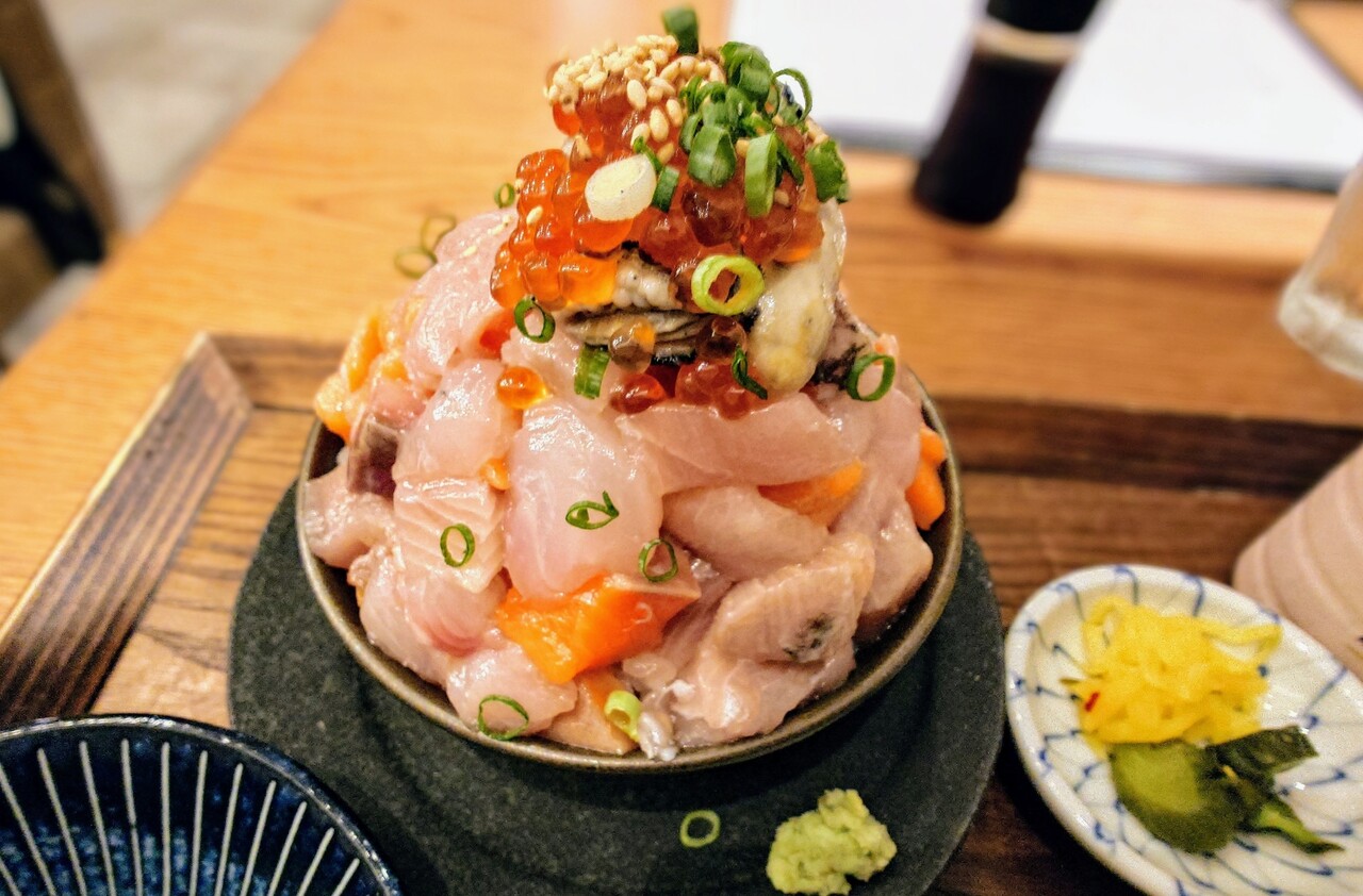 お椀の上にこれでもかと盛られた魚と、頂上にはイクラと牡蠣が乗ったとても写真映えのする豪華海鮮丼です。魚食べたい欲がしっかりと満たされました。途中まで食べ終わると、スタッフにお出汁をお願いして後半はお茶漬けとしても楽しめます。やはり岩牡蠣が想像以上においしかったので、また来たいお店になりました。今度は夜も来てみたい。
