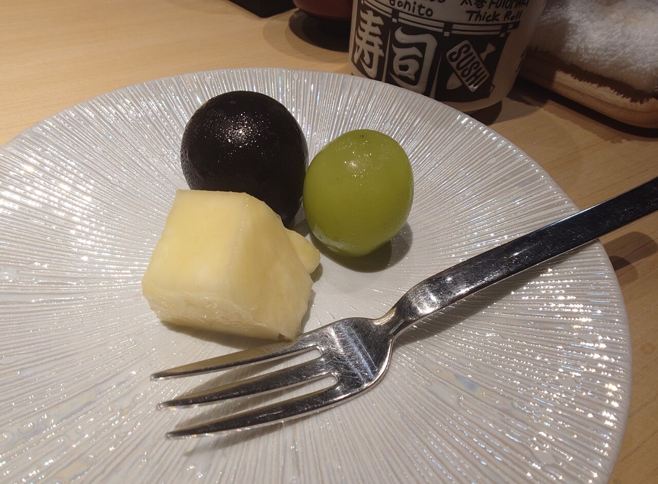 〆のデザート パイナップル、シャインマスカット、長野パープル