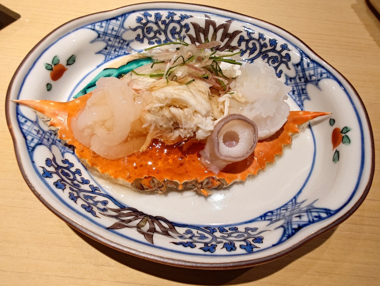 生タコ、ワタリガニ、白エビと三杯酢ジュレ