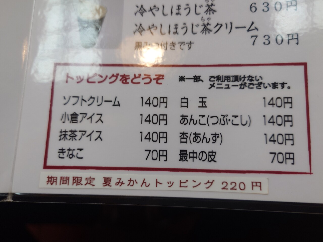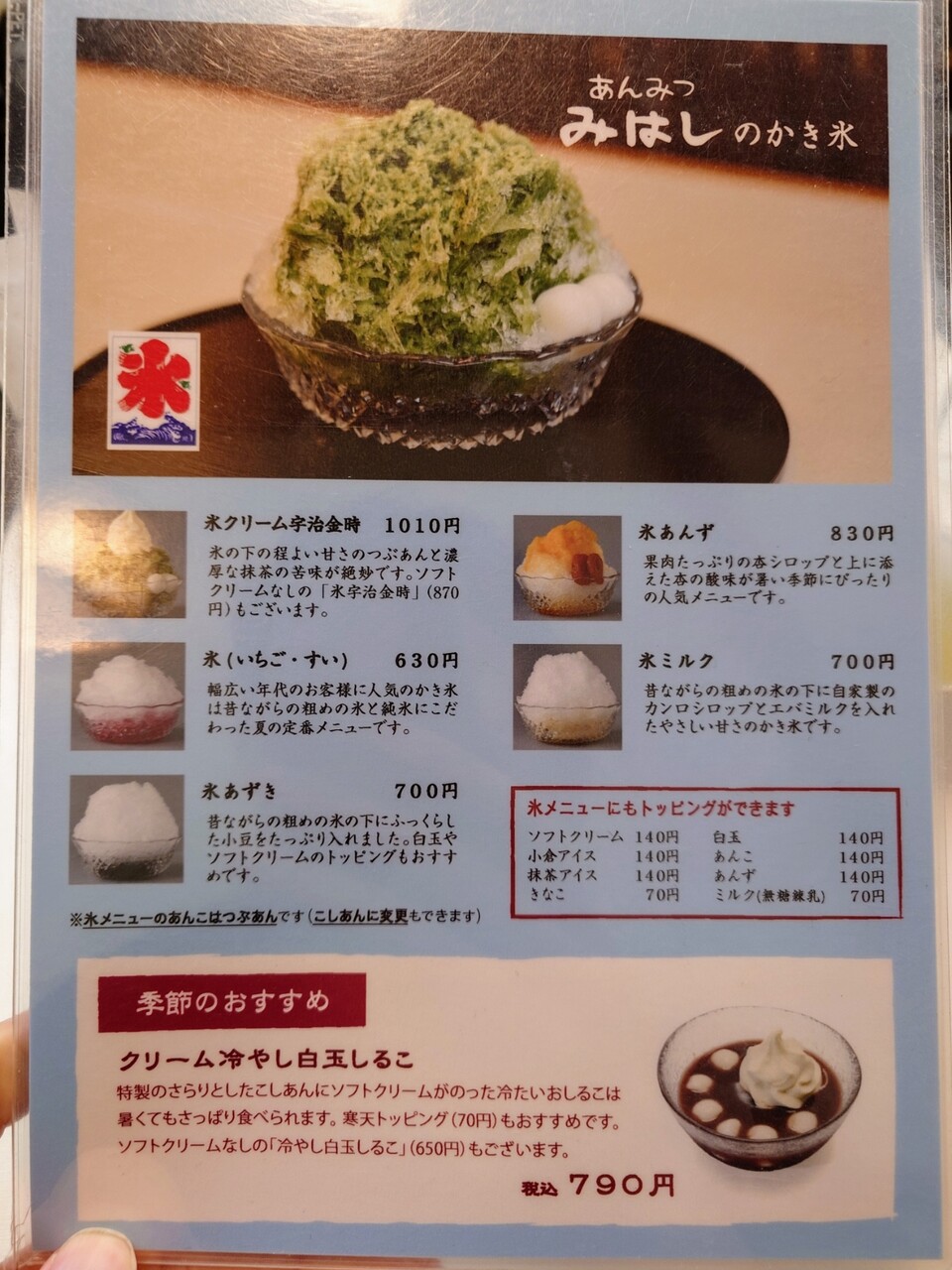 かき氷メニュー