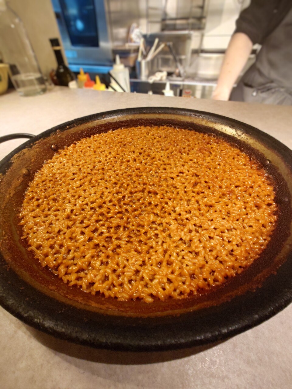 前回はイカ墨だったので今回は魚介パエリアを選択