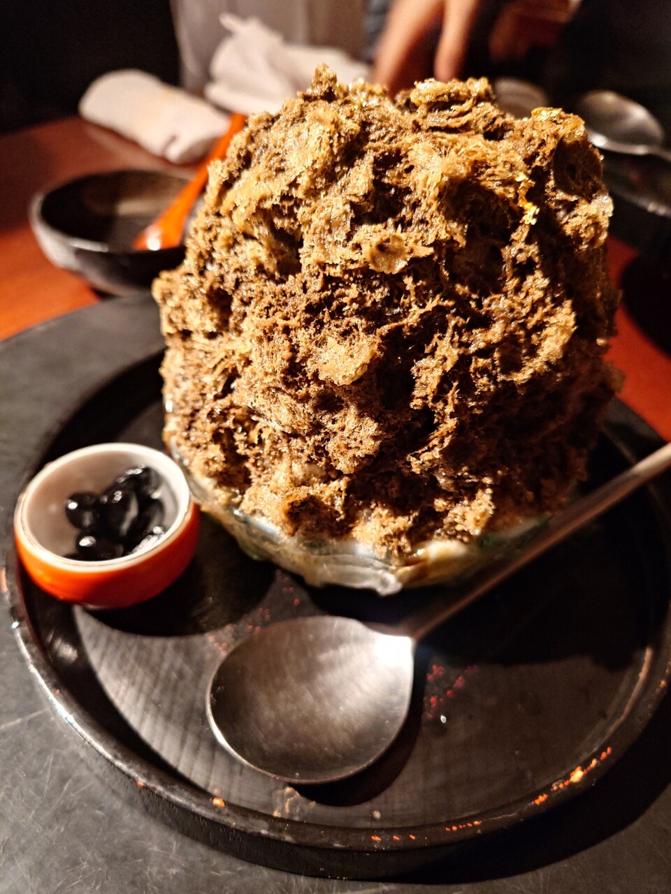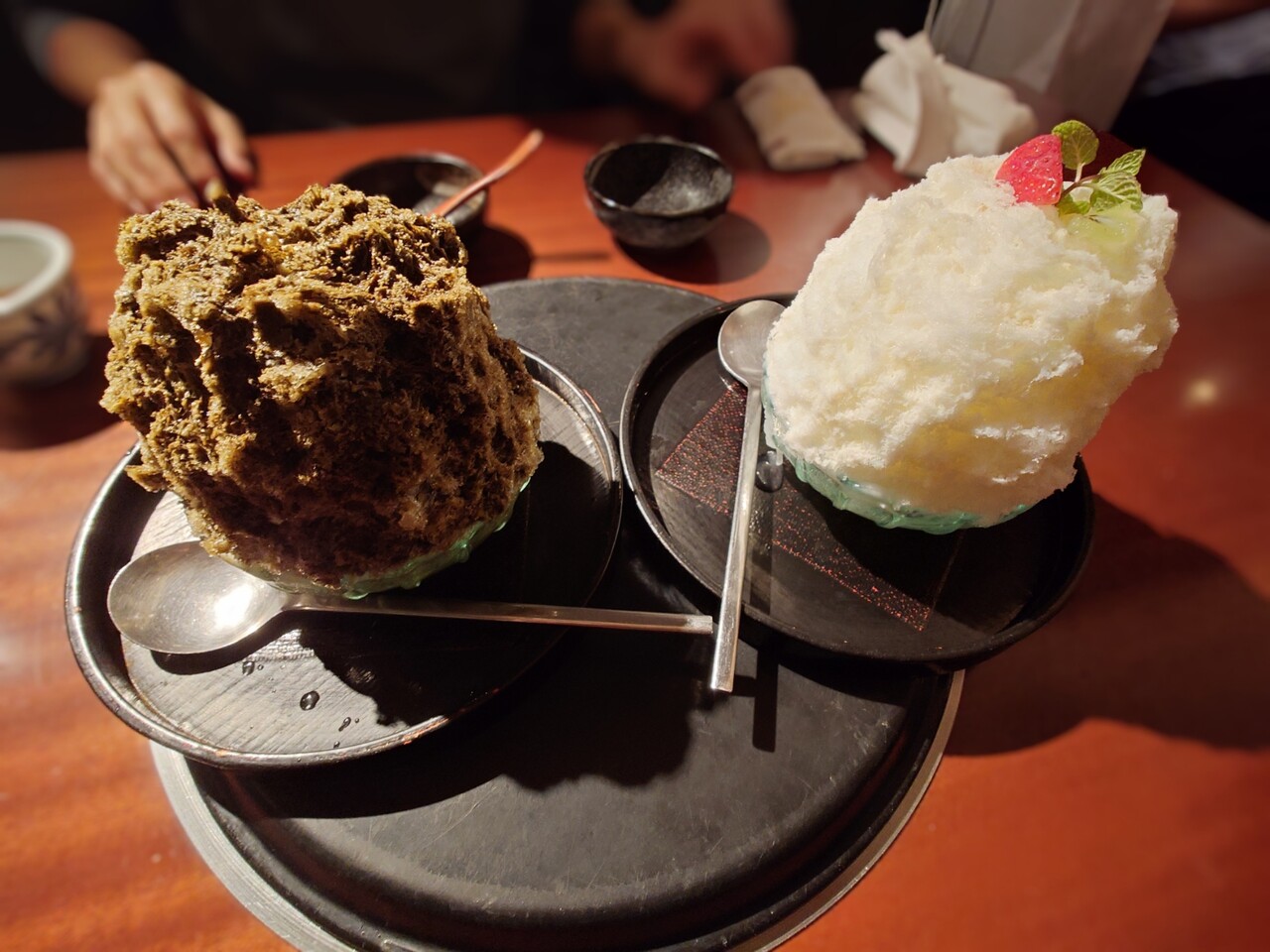 デザートのほうじ茶かき氷 ほうじ茶が濃厚でめっちゃうまかった