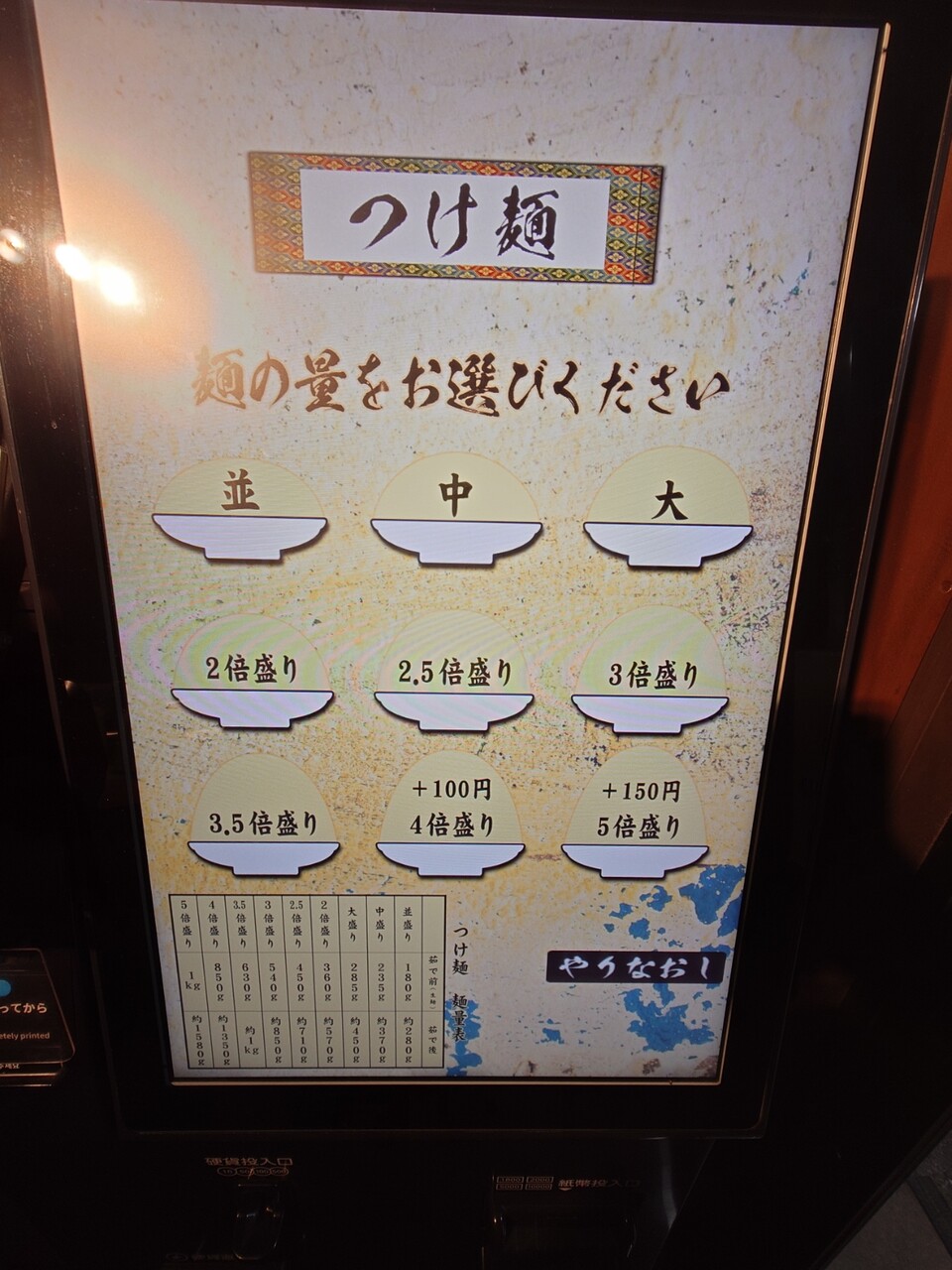 麺は3.5倍まで同一のお値段