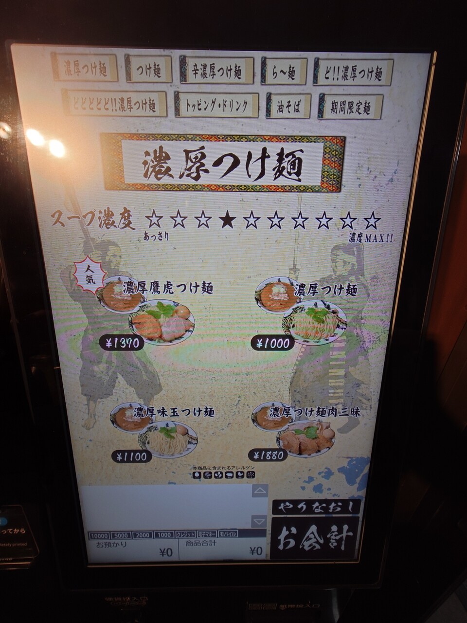人気の濃厚鷹虎つけ麺をはじめ、ど!!濃厚つけ麺などもあります
