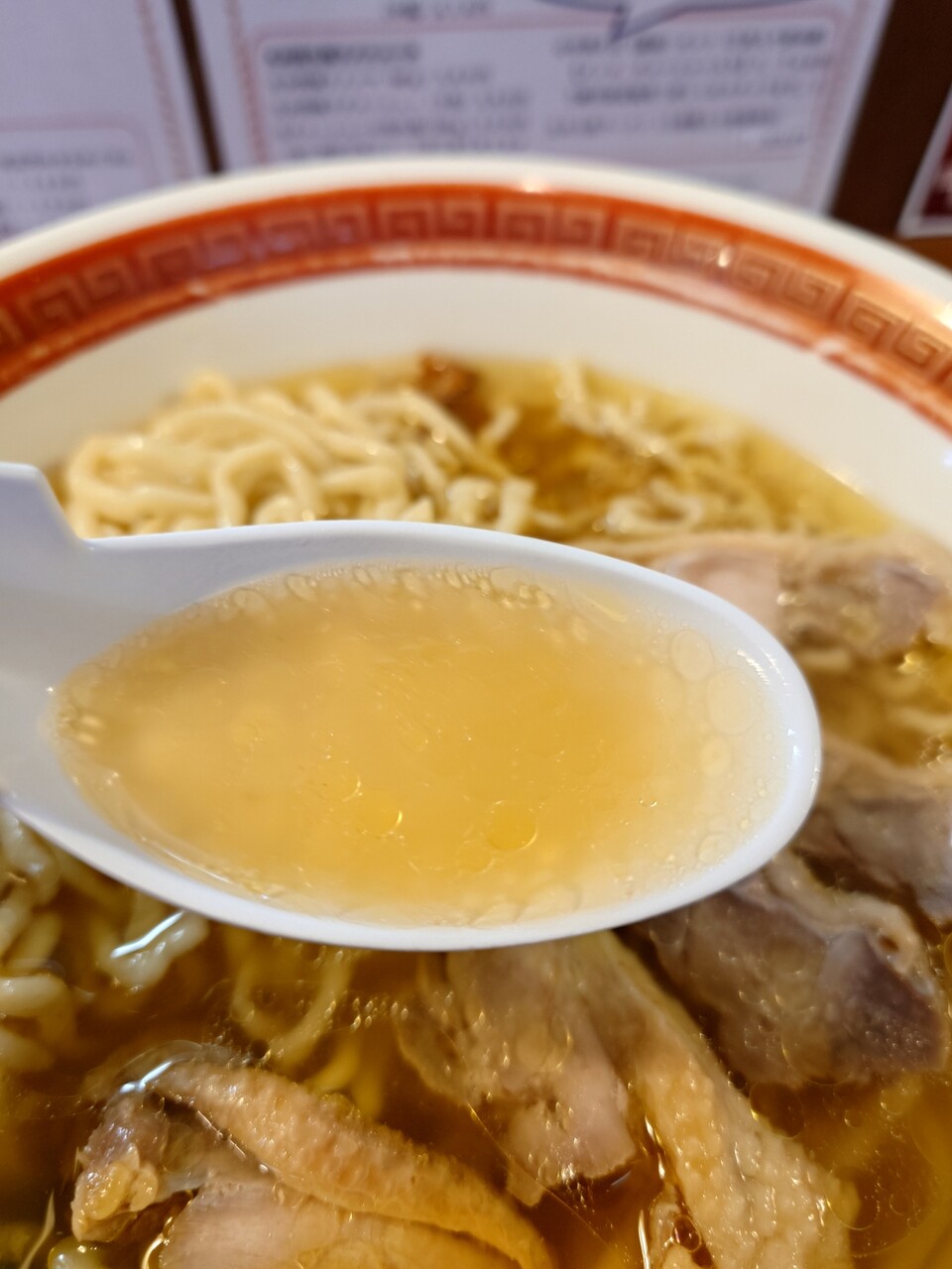 鶏のみで作った純鶏スープ+醤油ダレのあっさりしたスープ